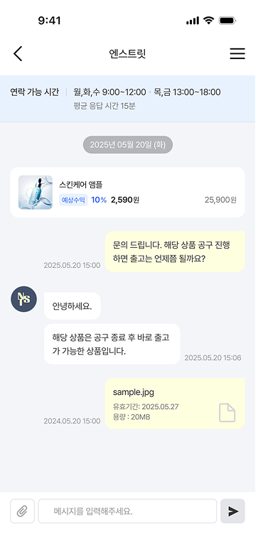 상품의 판매 일정과 수익률을 메신저를 통해 간편하게 조율하세요.