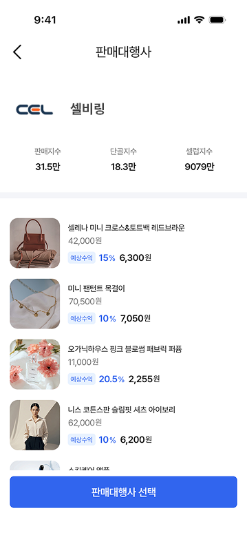 셀비링은 셀럽·인플루언서와 전문 판매대행사를 연결하는